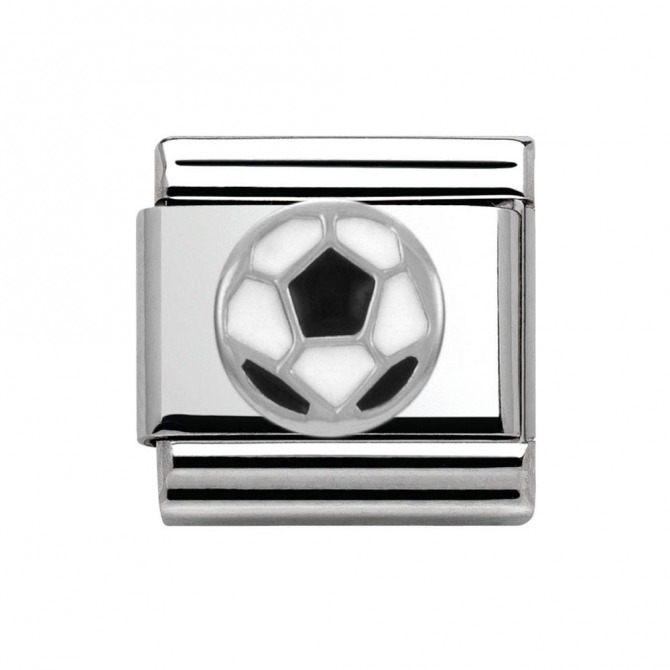 Nomination Original Charm for Composable Classic Bracelet with Soccer Ball symbol in stainless steel, sterling silver and black enamel. Made in Italy. The perfect gift for football lovers!