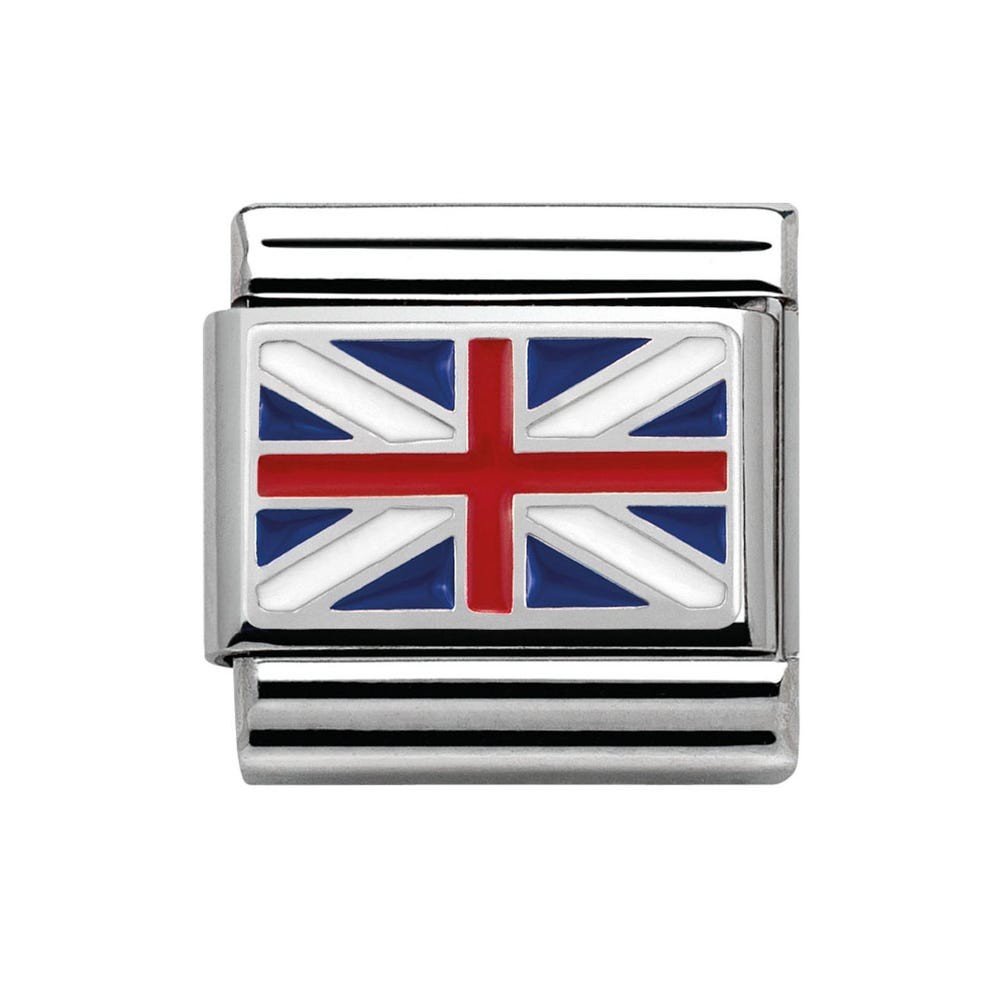 Original stainless steel Charm for Nomination's Composable Classic Bracelet with Flag of Great Britain. Details in silver and enamel. Made in Italy. Personalise your bracelet as a memory of the most important trip of your life.