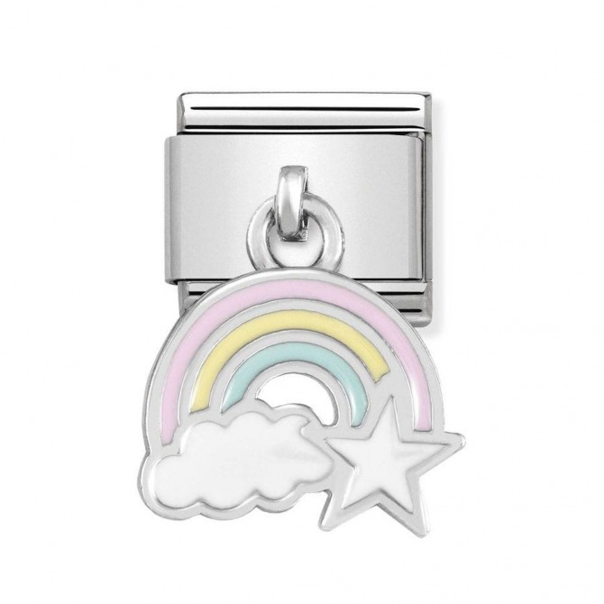 Original Pendant link for bracelet in sterling silver and enamel Rainbow with Cloud and Star. Made in Italy. Celebrate your friend or sister, the Dreamer with this Rainbow, Cloud and Star Pendant Link.