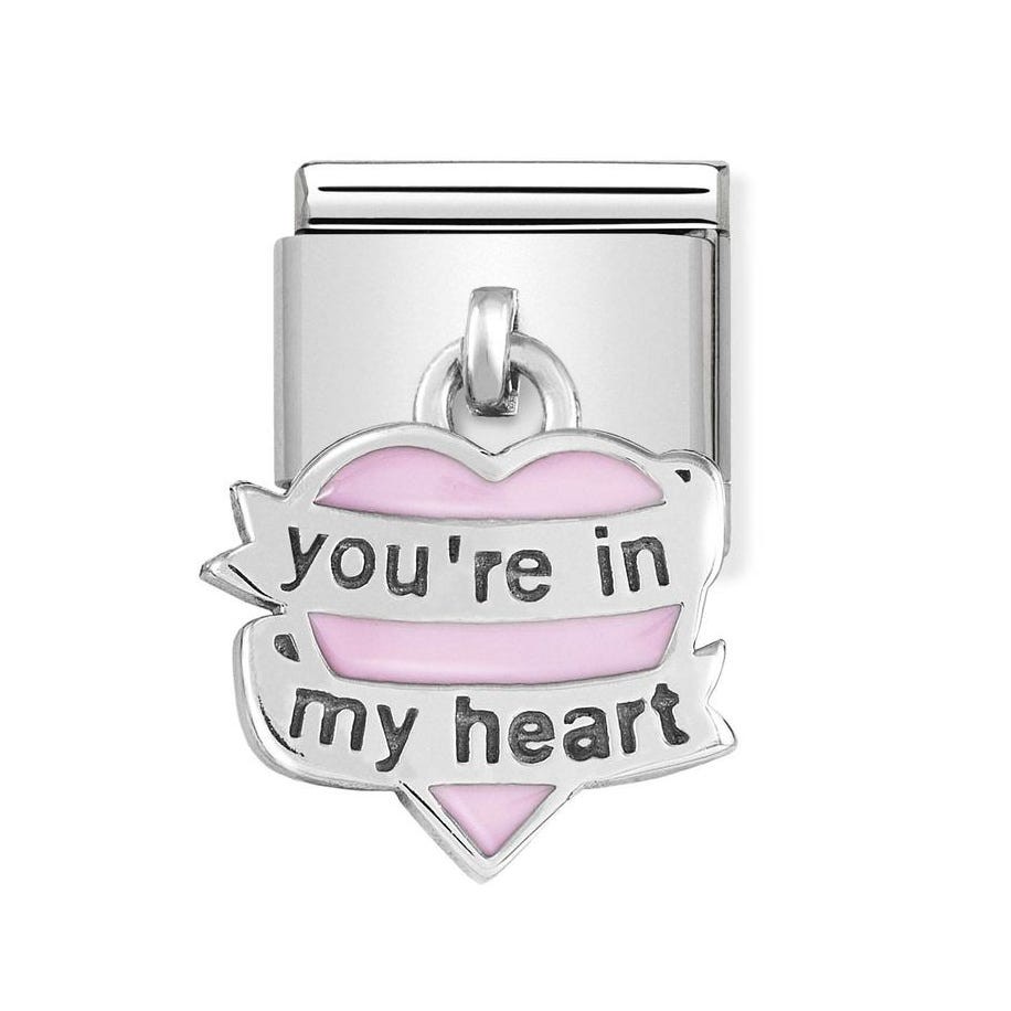 Original Pendant link for bracelet in sterling silver and enamel YOU’RE IN MY HEART Pink Heart. Made in Italy. The pendant link to tell your best friend or sister how you feel. An ideal gift for Valentine's Day or a Wedding Anniversary.