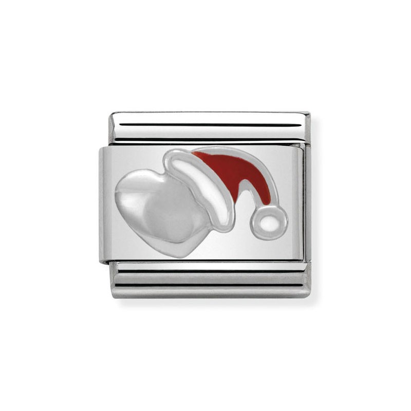 Nomination Original Charm for Composable Classic Bracelet with Heart with Christmas Hat symbol in stainless steel, sterling silver and enamel. Also available in other Christmas symbols. Made in Italy. The perfect Christmas gift.