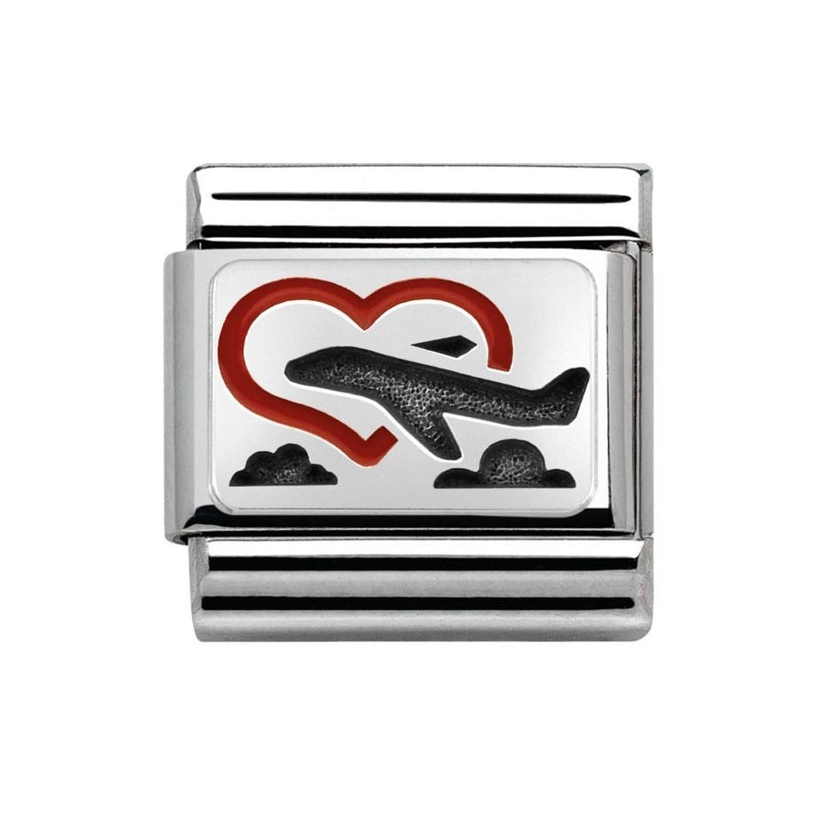 Original Charm for Classic Bracelet with Love symbol in stainless steel, sterling silver and enamel with Heart with Plane. Made in Italy. Celebrate your romantic moments in a special way!