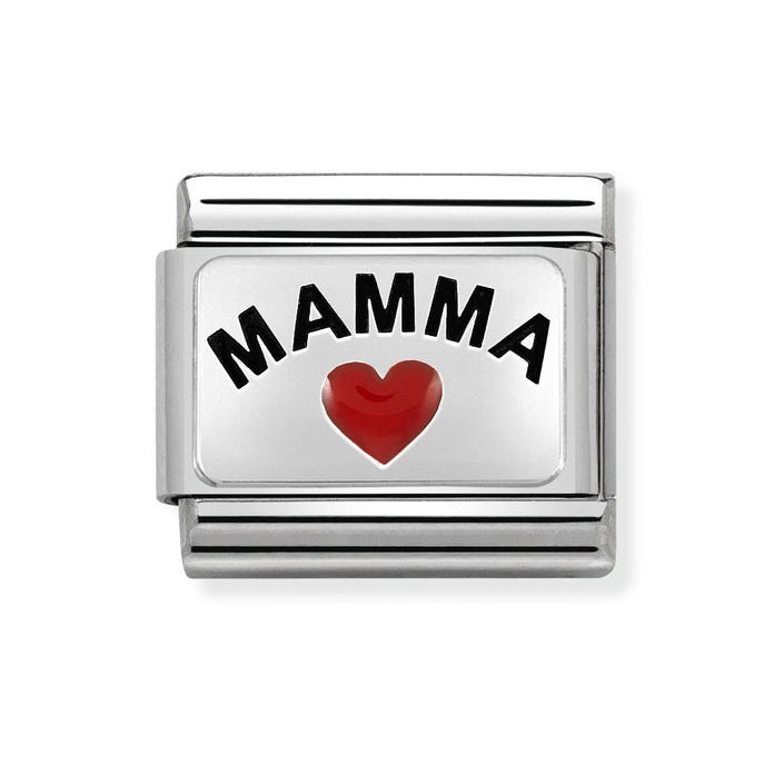Charm for the original Composable Classic bracelet in stainless steel with Mamma written and Heart in sterling silver and enamel. Made in Italy. A special message for your very special Mum. #oneformeoneforyou The perfect Mother's Day gift.