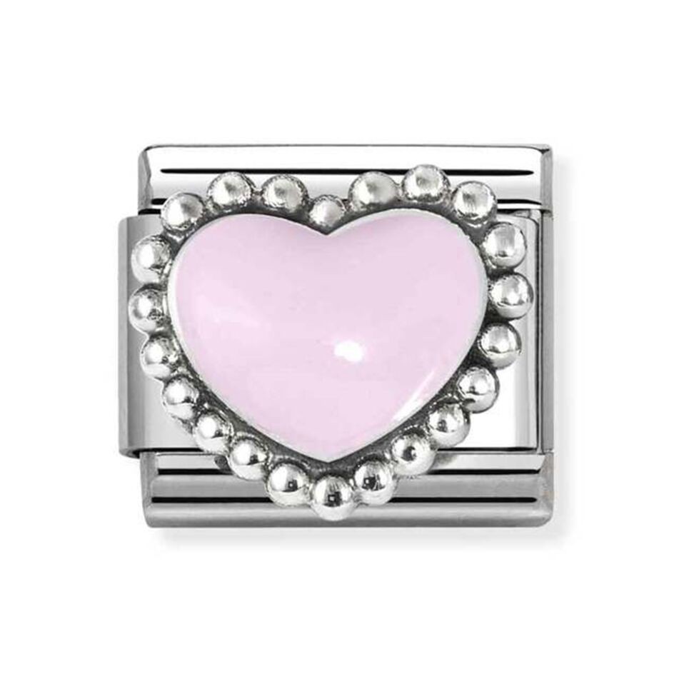 Original Nomination Composable Classic Link for Composable bracelet in stainless steel with raised sterling silver Pastel Pink beaded Heart with Pink enamel. What are you waiting for? Snap up this Link and add a pretty touch of pink to your bracelet. This Heart is fun and updated and is that small update to your bracelet that will have you fall in love again with every Link!