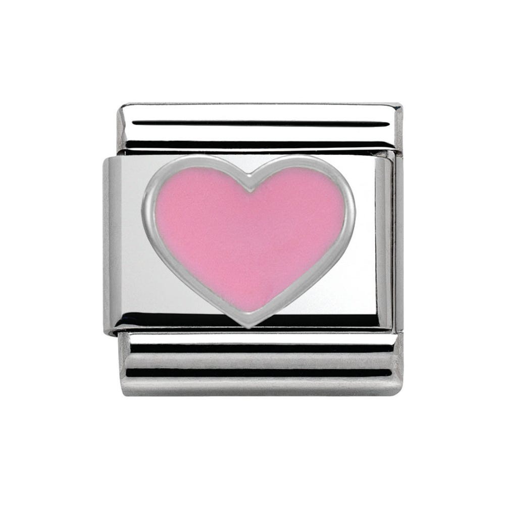 Classic Charm for Original Composable Bracelet with pink Heart in sterling silver, stainless steel and enamel. Available also as a red Heart. Made in Italy. The perfect gift for Valentine's Day.