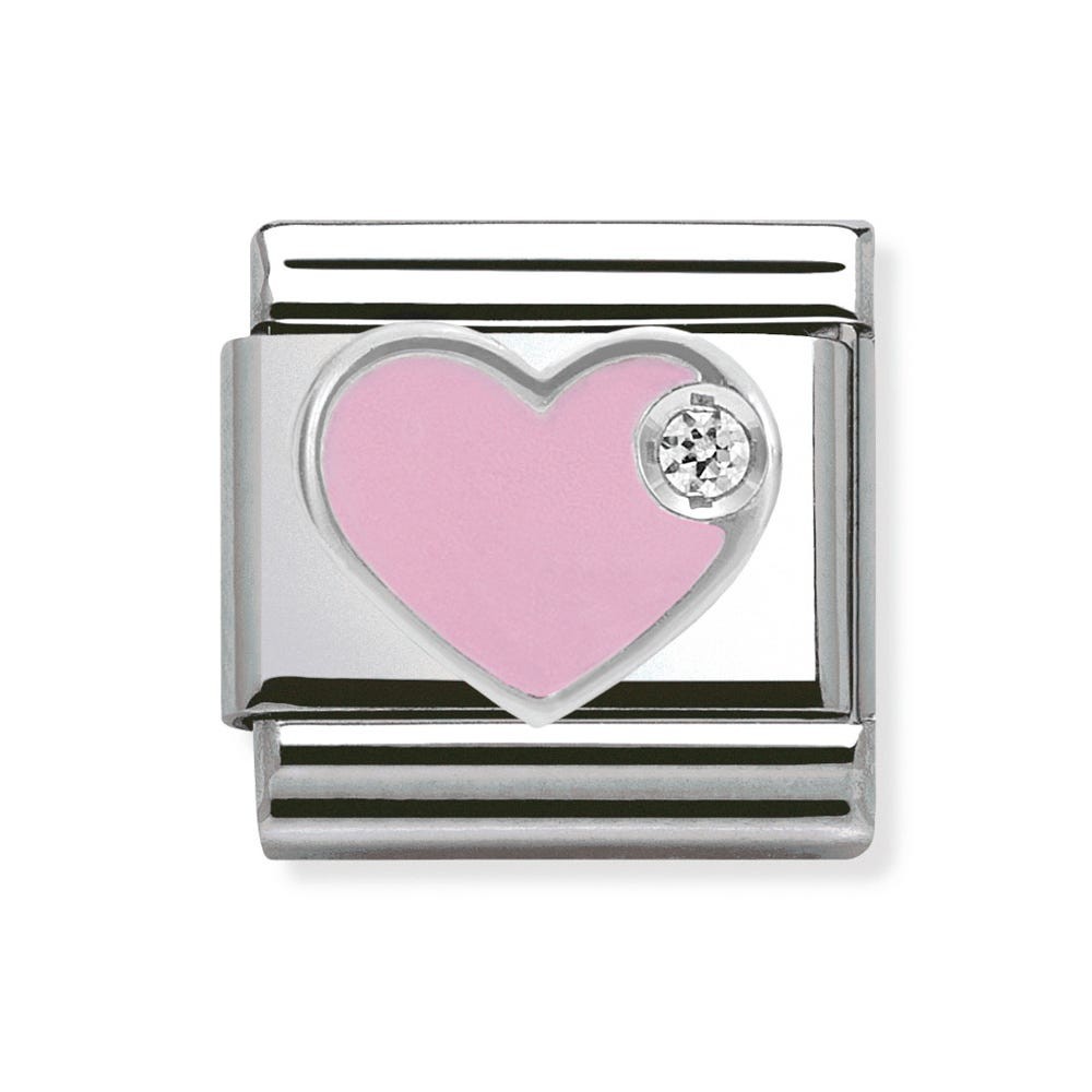 Original Charm for Nomination's Composable Classic Bracelet with pink Heart in stainless steel, sterling silver, pink enamel and Cubic Zirconia. Made in Italy. Add a special touch to your bracelet. A beautiful Valentine's Day gift.