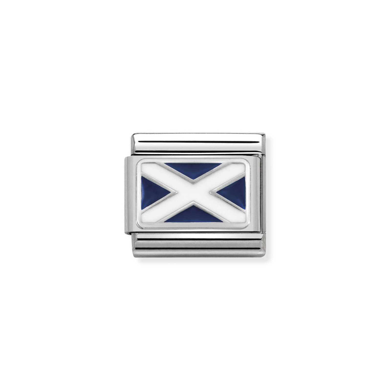 Original stainless steel Charm for Nomination's Composable Classic Bracelet with Flag of Scotland. Details in silver and enamel. Made in Italy. Choose your most precious souvenir of a great trip.