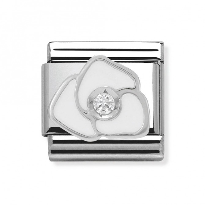 Original Charm for Nomination's Composable Classic Bracelet with white Rose in stainless steel, sterling silver, enamel and Cubic Zirconia. Made in Italy. Add a touch of sophistication to your look.