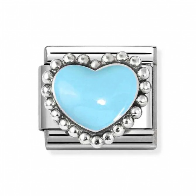 Original Nomination Composable Classic Link for Composable bracelet in stainless steel with raised sterling silver Pastel Blue beaded Heart with Blue enamel. The colour of this Link calls to mind the vast blue sky. This celestial hue is elegant and refined. With this Link you will never pass unobserved.