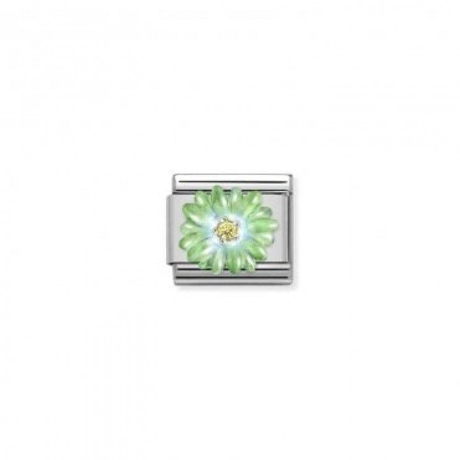 Original Nomination Link for Composable Classic Bracelets in stainless steel and sterling silver with Flower symbol with Green enamel and Yellow Cubic Zirconia. Made in Italy. This Link is a perfect gift for someone who loves the colour Green.