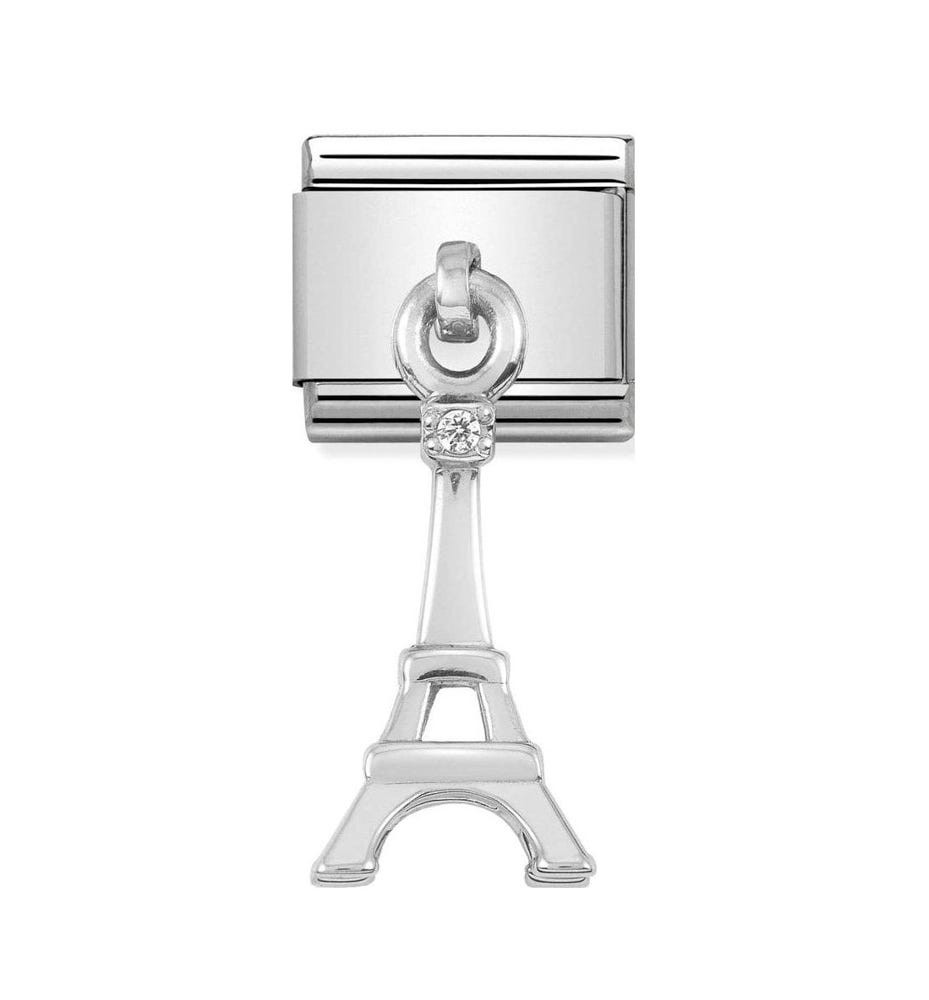 Create a chic Parisian style with the Classic Silver 3D Eiffel Tower Charm by Nomination. Crafted from stainless steel, sterling silver and embellished with a sparkling little cubic zirconia stone, this is the perfect charm to celebrate a love of travelling or all things French.