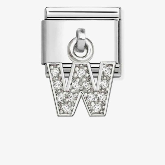 Original Nomination Composable Classic Link for Composable bracelet in stainless steel with silver with White Cubic Zirconia on Letter W Pendant. Create gorgeous combinations with other Links that reflect your style.