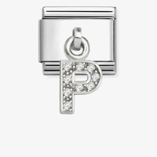 Original Nomination Composable Classic Link for Composable bracelet in stainless steel with silver with White Cubic Zirconia on Letter P Pendant. A timeless gift that appeals to all jewellery lovers.