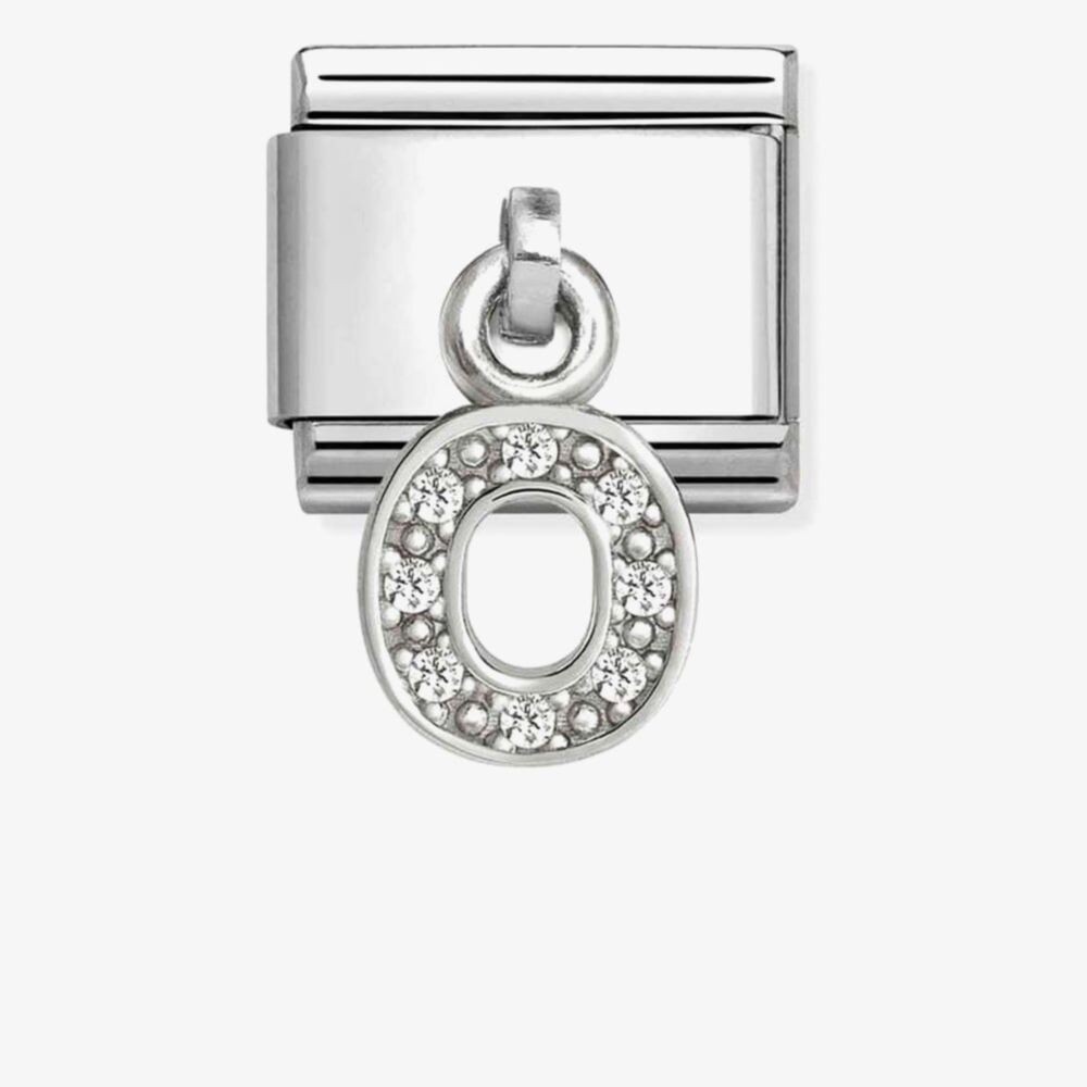 Original Nomination Composable Classic Link for Composable bracelet in stainless steel with silver with White Cubic Zirconia on Letter O Pendant. Choose this symbol of affection that recalls a bond shared with someone dear.