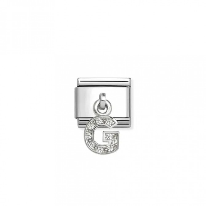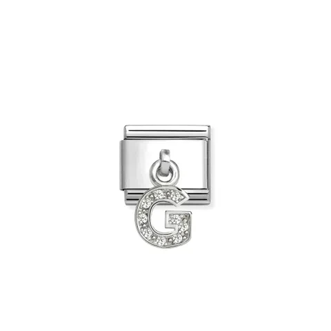 Original Nomination Composable Classic Link for Composable bracelet in stainless steel with silver with White Cubic Zirconia on Letter G Pendant. This Link is an easy way to keep someone close and treasure the thought of someone special. Wear this pendant Link to make every day special.