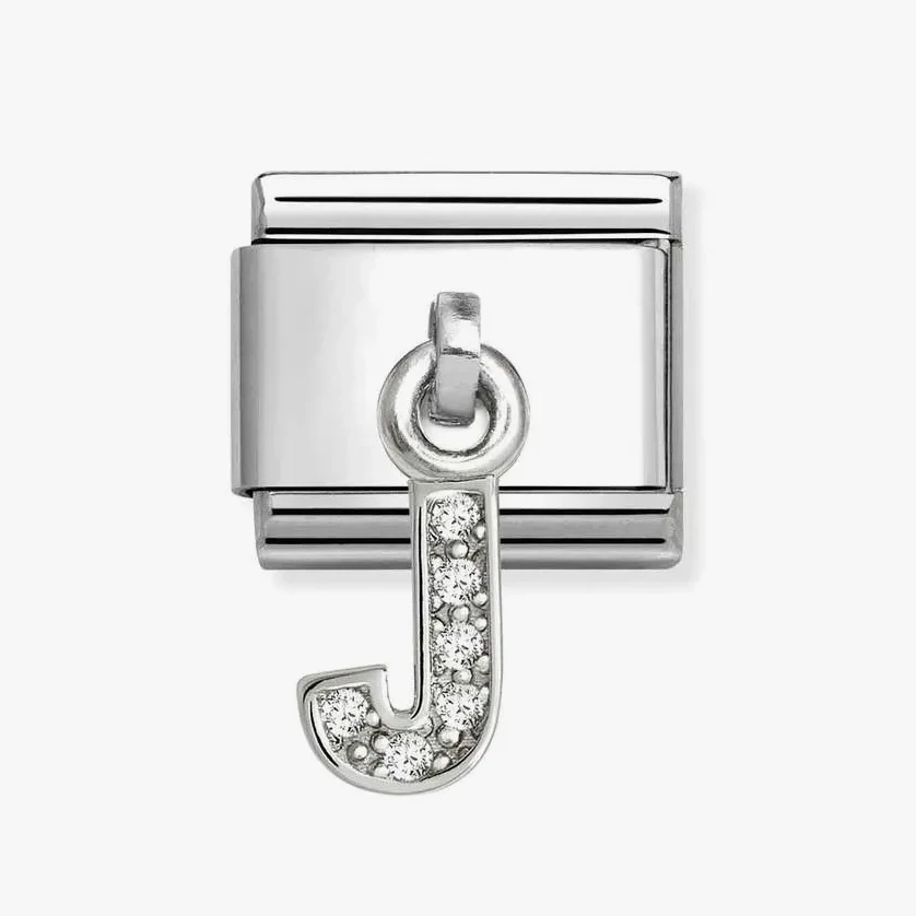 Original Nomination Composable Classic Link for Composable bracelet in stainless steel with silver with White Cubic Zirconia on Letter J Pendant. Enrich your Composable Collection with this new Alphabet, made from precious pendants. This is your new Must Have!