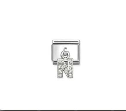 Original Nomination Composable Classic Link for Composable bracelet in stainless steel with silver with White Cubic Zirconia on Letter N Pendant. Keep someone dear to you with you always.