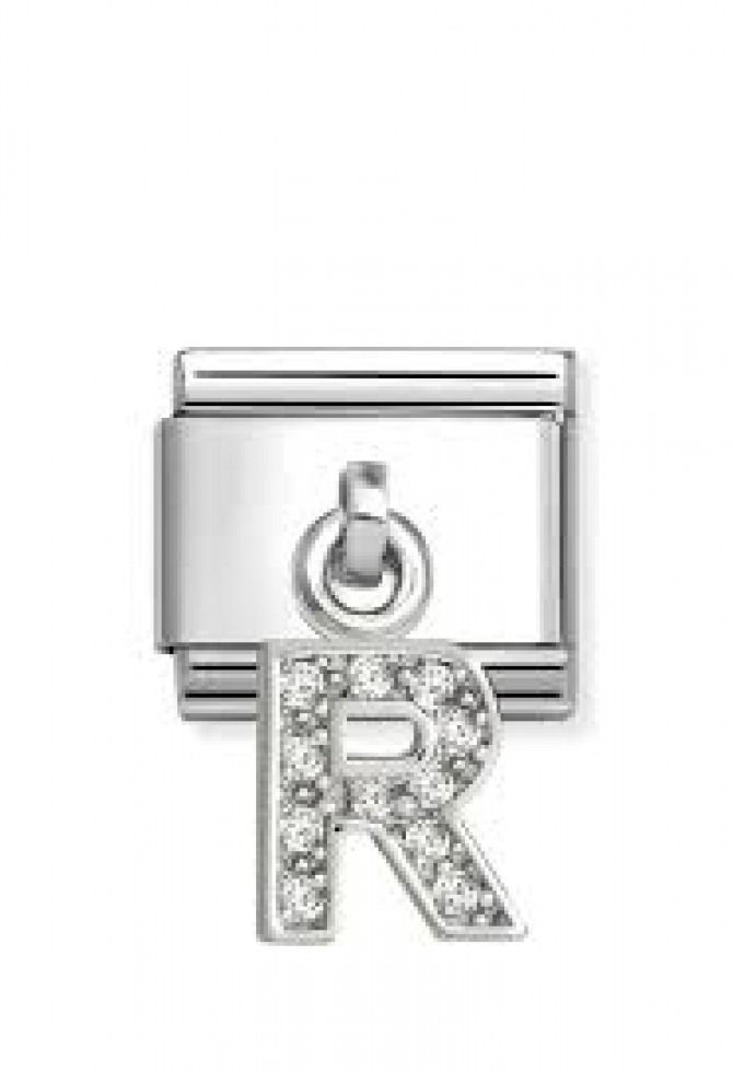 Original Nomination Composable Classic Link for Composable bracelet in stainless steel with silver with White Cubic Zirconia on Letter R Pendant. Add your initial Link to your bracelet or the initial of someone you love and declare that special bond.