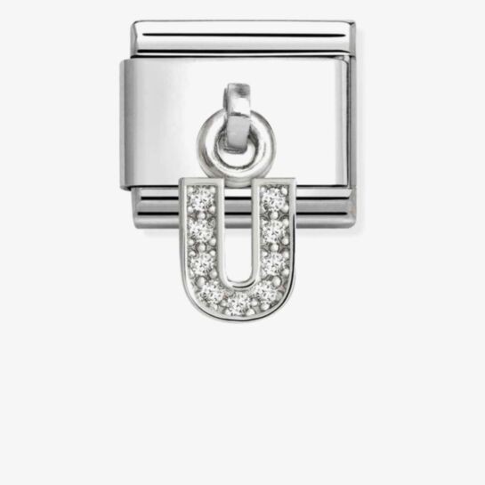 Original Nomination Composable Classic Link for Composable bracelet in stainless steel with silver with White Cubic Zirconia on Letter U Pendant. Add these letters to your bracelet to create a message.