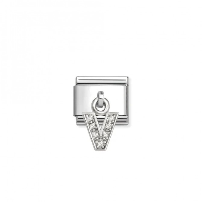 Original Nomination Composable Classic Link for Composable bracelet in stainless steel with silver with White Cubic Zirconia on Letter V Pendant. These letters have an enormous communicative potential. Add them to your bracelet now.