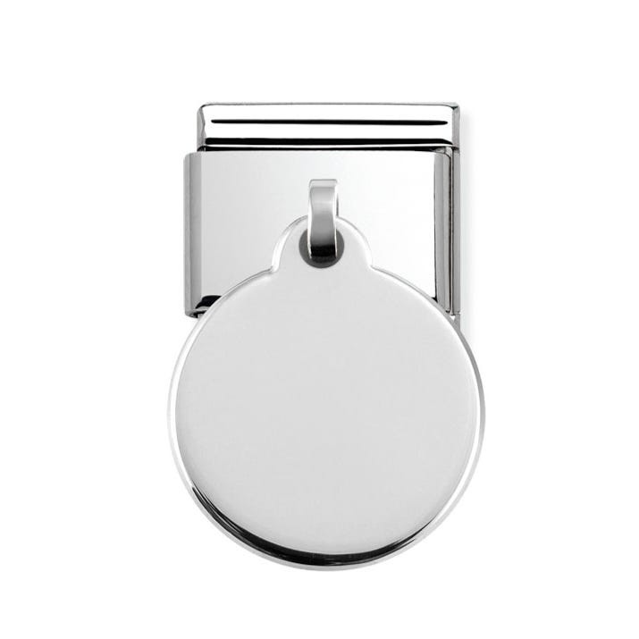Original Composable Charm for the Classic size bracelet in stainless steel with round pendant in sterling silver. Made in Italy. Inscribe this Charm with your name or with a date that has special meaning.