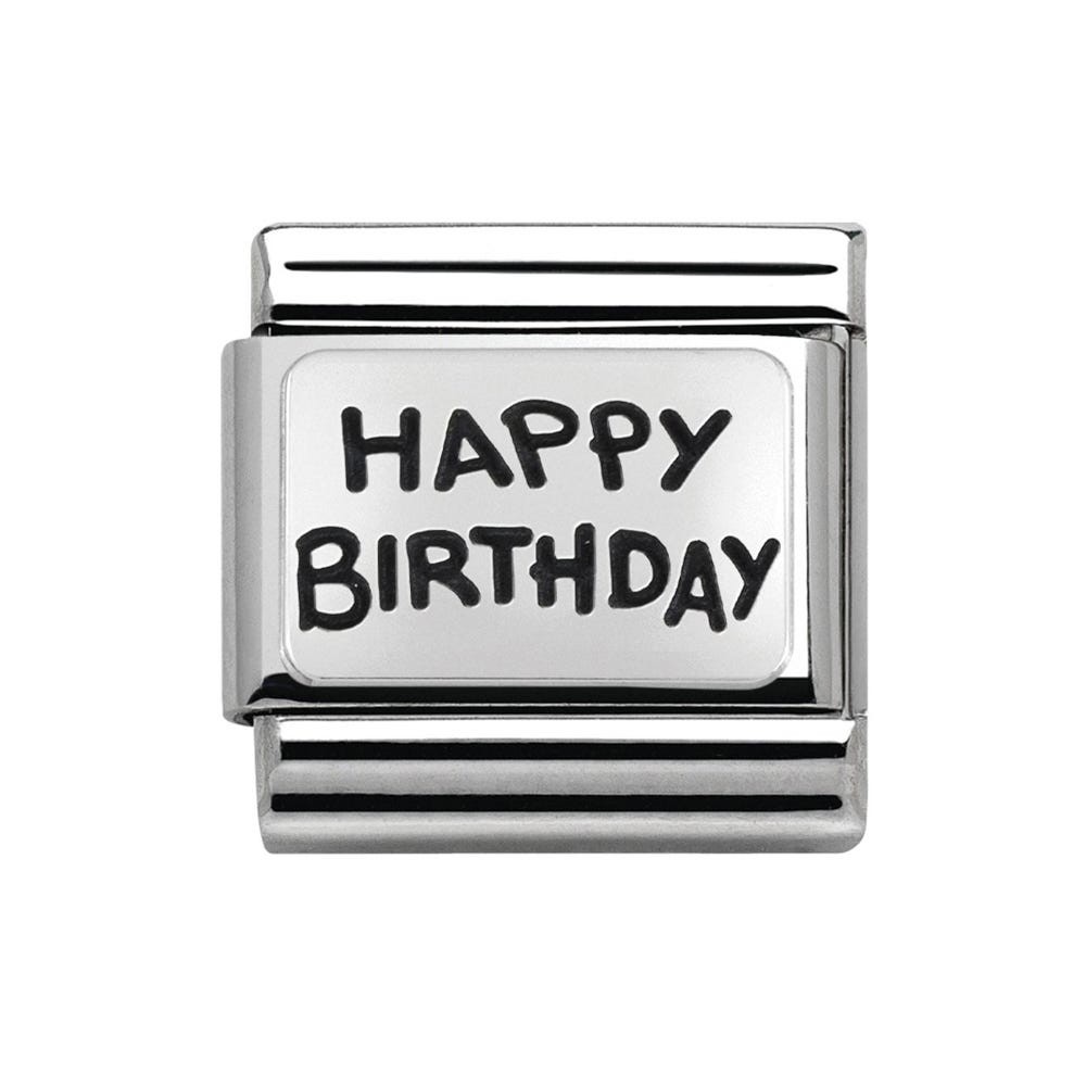 Composable Classic Charm for original bracelet in stainless steel and sterling silver with writing. Made in Italy. The perfect gift for your birthday.