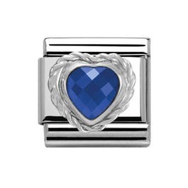 Original Charm in stainless steel, sterling silver and Cubic Zirconia for Nomination's Composable Classic Bracelet with blue Heart. Made in Italy. Blue is the colour of inner serenity and confidence. Perfect as a September Birthday gift.