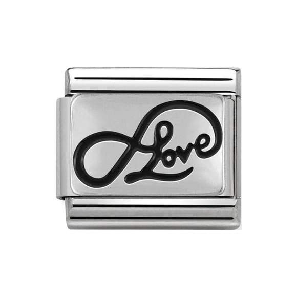 Classic Charm for Original Composable Bracelet with symbol of Infinity Love in stainless steel, sterling silver and enamel. Made in Italy. The perfect Charm to show that your love is a journey starting at forever and ending at never.
