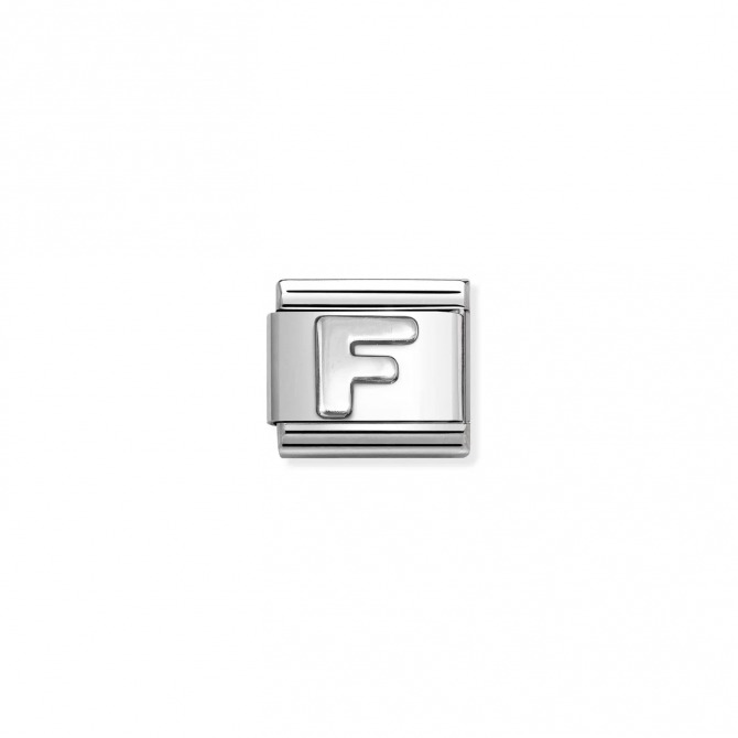 Original Nomination Link for Composable Classic Bracelets in stainless steel and sterling silver with oxidised vintage effect with Alphabet Letter F. Made in Italy. The Composable Collection adds another dimension to its DNA with the new Silvershine letters in sterling silver: Genderless and at a very accessible price; lose no time and create your bracelet Link by Link now.