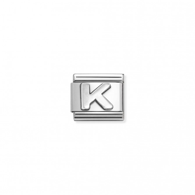 Original Nomination Link for Composable Classic Bracelets in stainless steel and sterling silver with oxidised vintage effect with Alphabet Letter K. Made in Italy. The new Silvershine letters in sterling silver are modern, linear little miracles of craftsmanship that are affordable and meant for everyone, regardless of gender. Tell your story, one letter at a time.