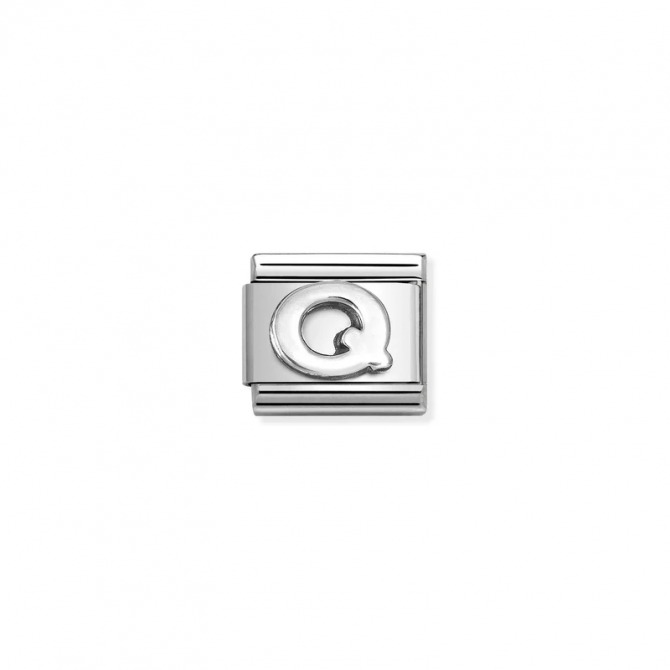 Original Nomination Link for Composable Classic Bracelets in stainless steel and sterling silver with oxidised vintage effect with Alphabet Letter Q. Made in Italy. The new Silvershine letters in sterling silver are modern, linear little miracles of craftsmanship that are affordable and meant for everyone, regardless of gender. Tell your story, one letter at a time.