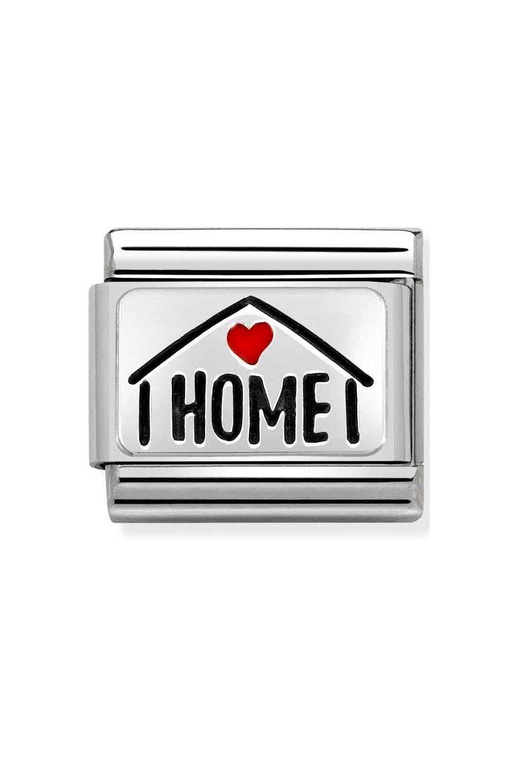 Original Nomination Link for Composable Classic Bracelets in stainless steel with sterling silver HOME symbol with Red enamel Heart symbol. Made in Italy. Add this Link to your bracelet to remind you that home is never too far away.
