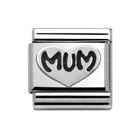 Charm for Original Classic Composable Bracelet in stainless steel and sterling silver with Mum writing. Charm from the My-Family Composable Collection. Made in Italy. Mother's Day is every day. Make her smile!