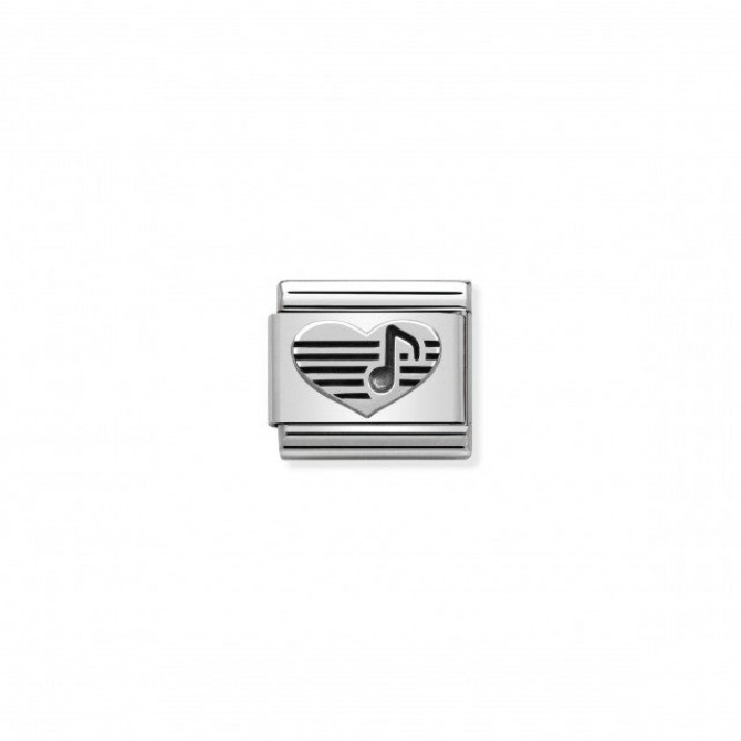 Charm for Original Classic Composable Bracelet in stainless steel and sterling silver with Heart and Musical Note. Made in Italy. Show all your love and passion for music!