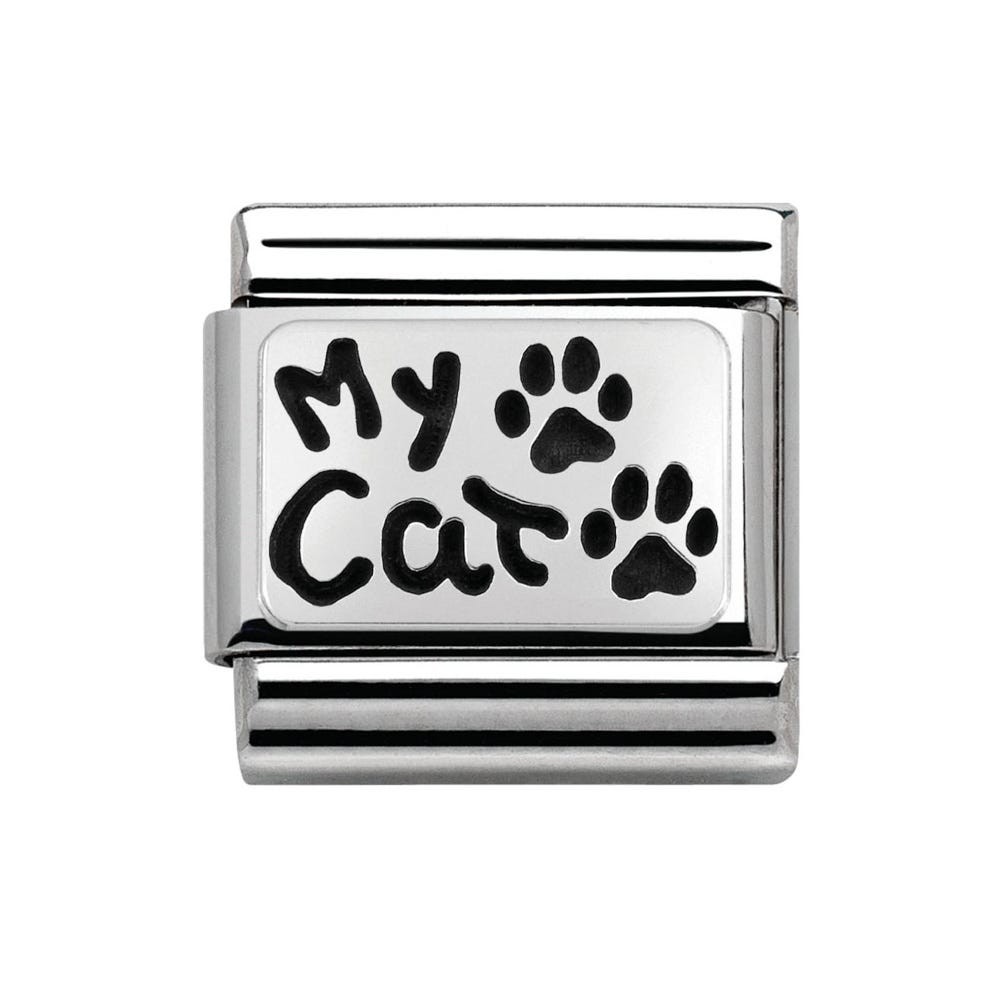 Charm for Original Classic Composable Bracelet in stainless steel, sterling silver and black enamel with “My Cat” writing. Made in Italy. What's your favourite animal Charm? Take your pick and show that you're a real animal lover!