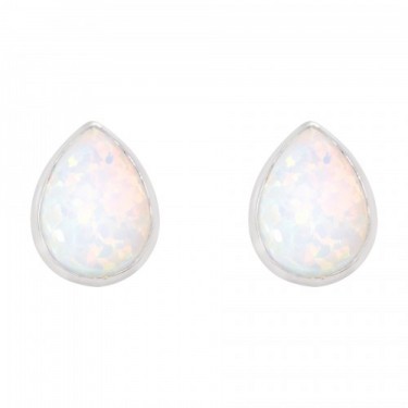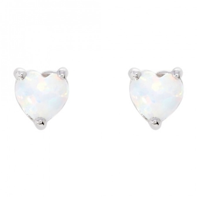 Sterling Silver & Created Opal 5mm Heart Shaped Claw Set Stud Earrings.