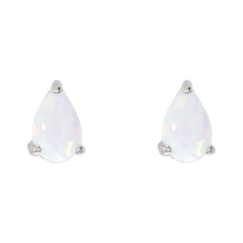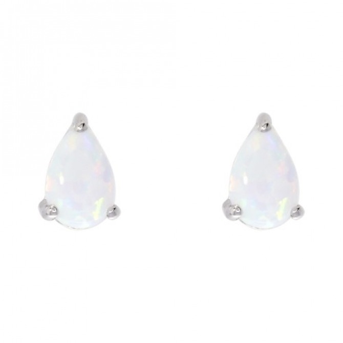 Sterling Silver and Created Opal 6x4mm Pear Shaped Claw Set Stud Earrings.