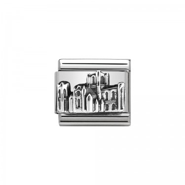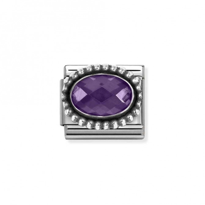 Nomination composable classic stones collection, stainless steel with oxidized silver beading surrounding a violet oval faceted cubic zirconia charm. Ideal as a February Birthday gift.