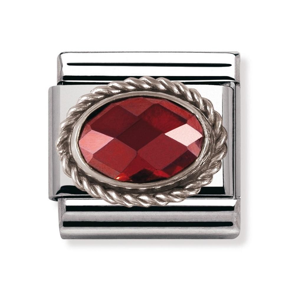 The Nomination red charm features a red cubic zirconia surrounded in twisted sterling silver and set on a bed of stainless steel. This is a truly beautiful addition to any composable bracelet and will certainly add an air of elegance. Ideal as an July Birthday gift.