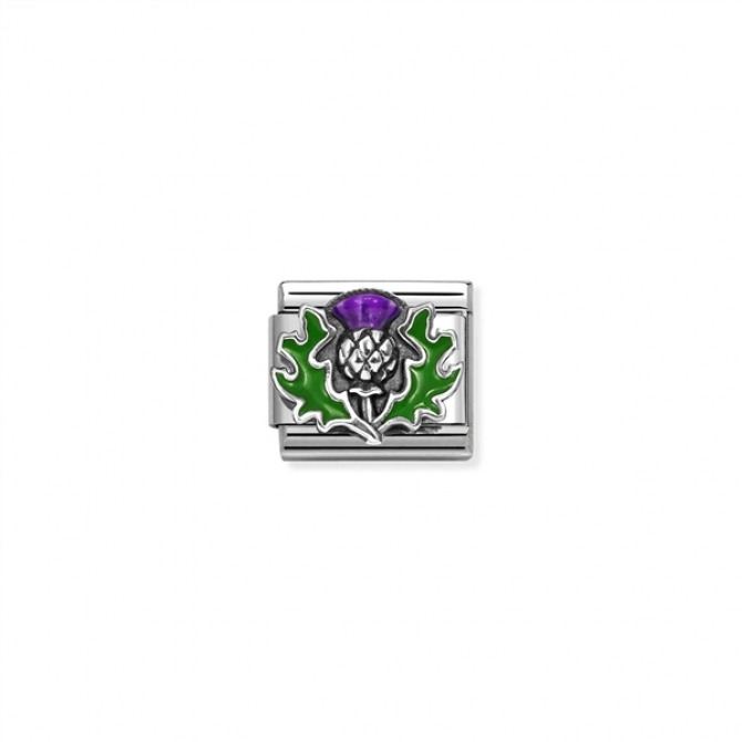 Original stainless steel Charm for Nomination's Composable Classic Bracelet with a Scottish Thistle. Details in silver and enamel. Made in Italy. Choose your most precious souvenir of a great trip.