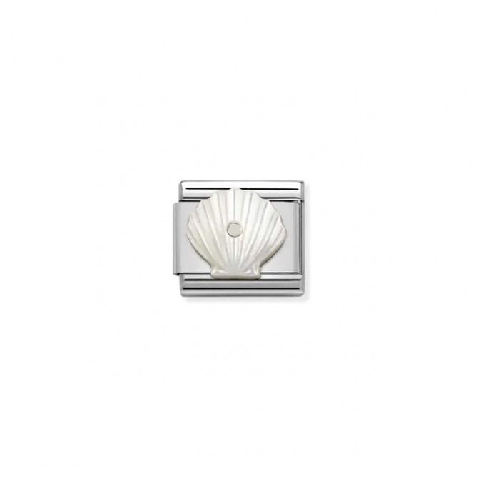 Original Nomination Link for Composable Classic Bracelets in stainless steel and sterling silver with Shell in White Mother of Pearl. Each shell symbol in white mother of pearl is shaped, polished and positioned by hand and are, therefore, subject to slight variations of shape, size, finish and positioning. Made in Italy. This Shell Link is the perfect way to remember one of your favourite trips or dream of your next one!