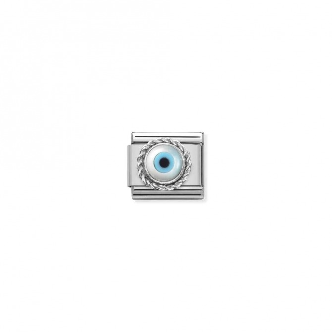 Original Nomination Link for Composable Classic Bracelets in stainless steel with sterling silver Greek Eye. Made in Italy. This Link is the perfect amulet to add to your Composable bracelet for good fortune and protection.