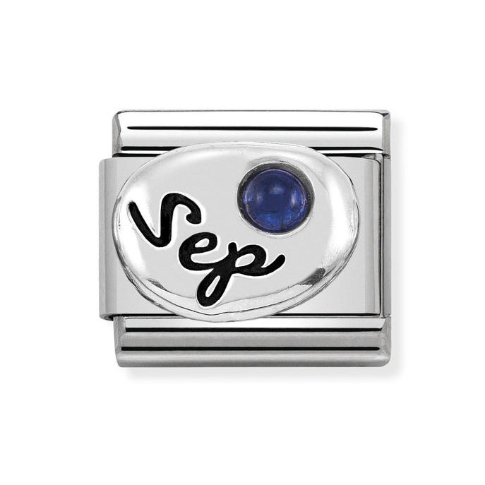Charm for the original Composable Classic bracelet in stainless steel, sterling silver and Sapphire. Made in Italy. Complete your birthstone collection with the blue sapphire, a gemstone which brings you faith and determination.
