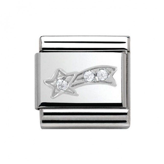 Classic Charm for Original Composable Bracelet with white Comet symbol in stainless steel, sterling silver, enamel and Cubic Zirconia. Made in Italy. The perfect birthday gift.