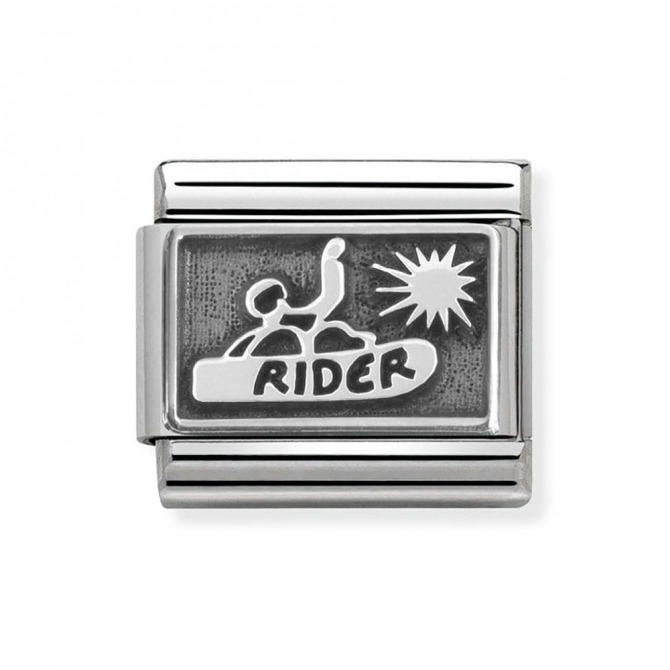 Adorn your favourite Nomination bracelet with this gorgeous stainless steel charm, finished with a beautiful snowboard rider design. An adorable charm perfect for expressing your individuality.