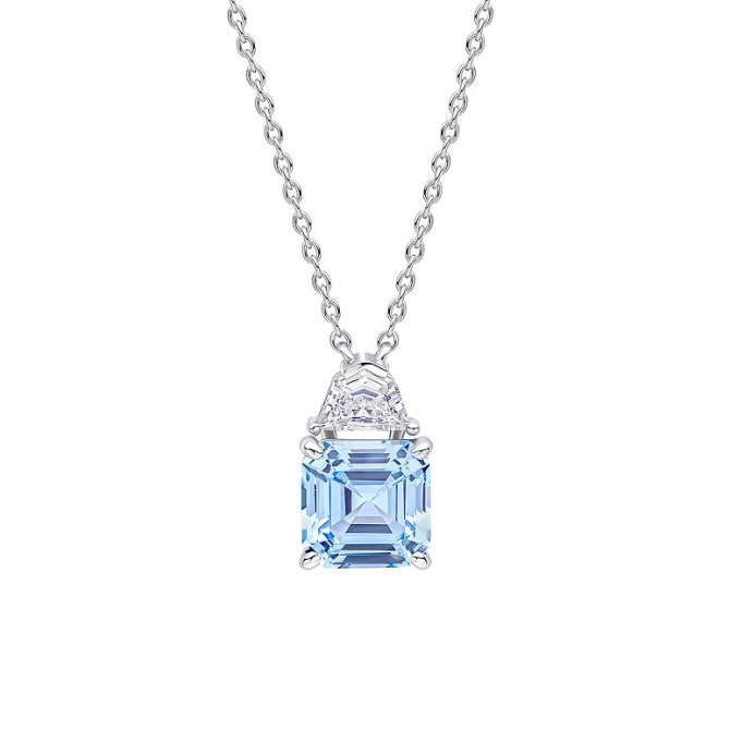 Silver with Square Cut Aquamarine Blue CZ Necklace