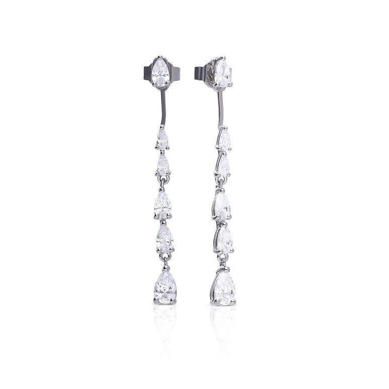 Silver Statement Teardrop CZ Front Stud & Back Drop Earrings