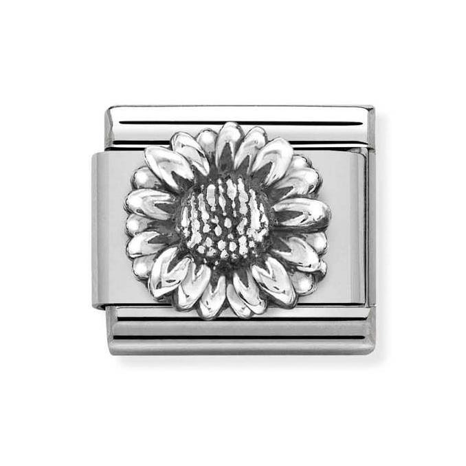 Original Nomination Link for Composable Classic Bracelets in stainless steel with Sunflower in oxidised sterling silver. Vintage effect. Made in Italy. This Link is perfect for someone who, just like a Sunflower, comes to life when the sun is out!