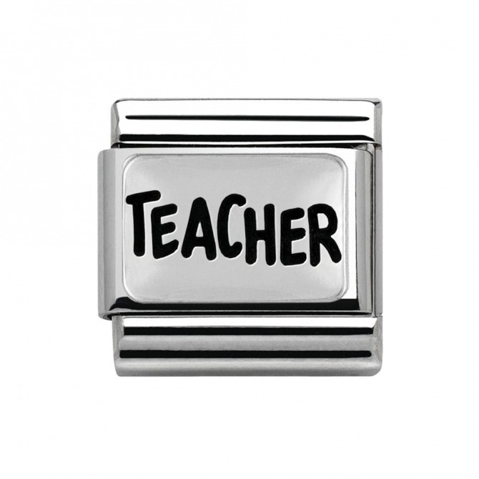 Composable Classic Charm for original bracelet in stainless steel and sterling silver with writing. Made in Italy. The perfect gift for teachers.