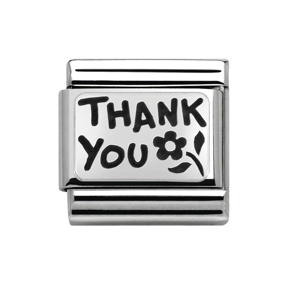 Composable Classic Charm for original bracelet in stainless steel and sterling silver with writing. Made in Italy. Say thank you to those who are always close to you with a unique gift.